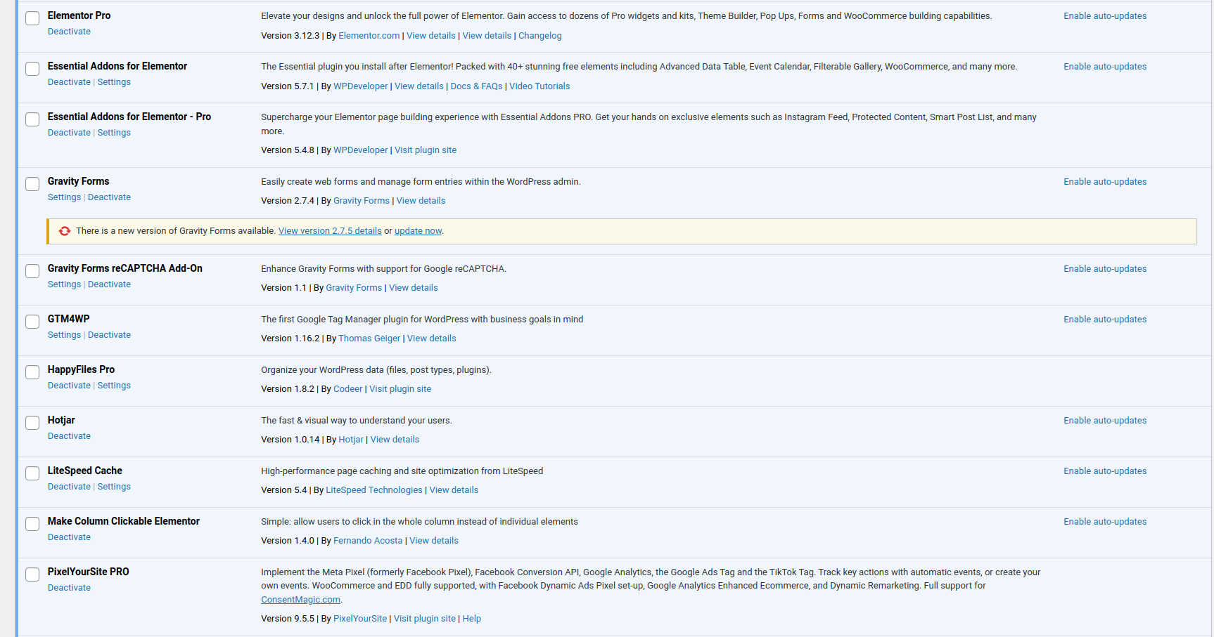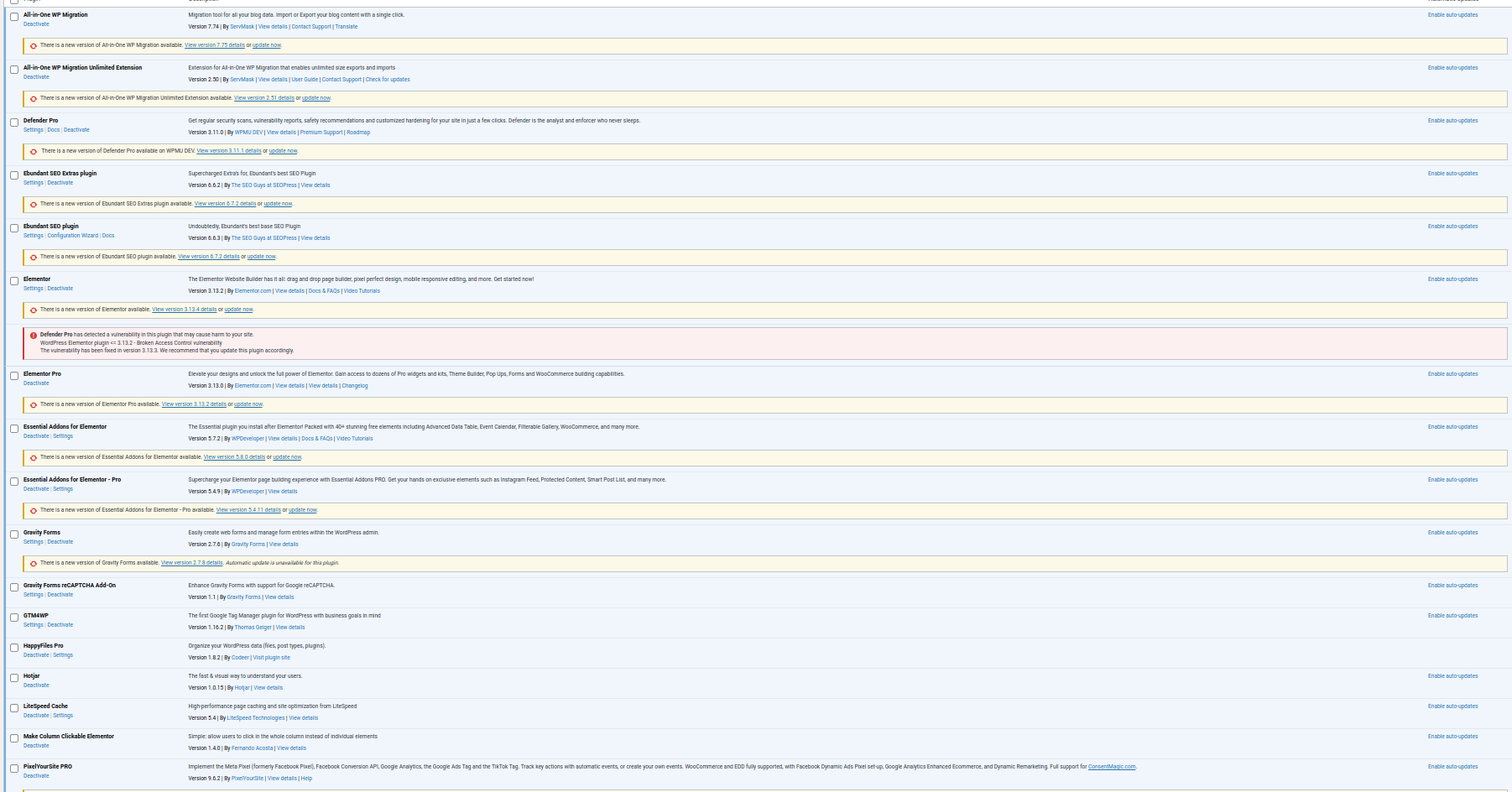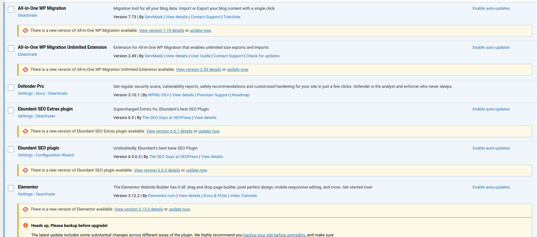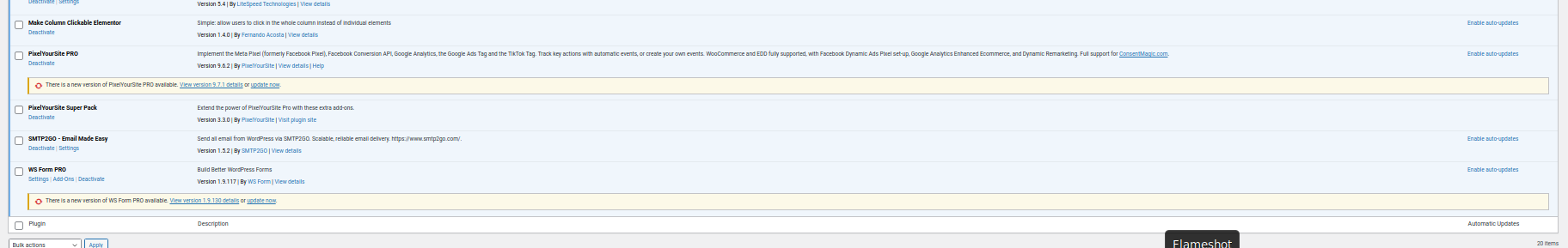 Screenshots Before Plugin Updated