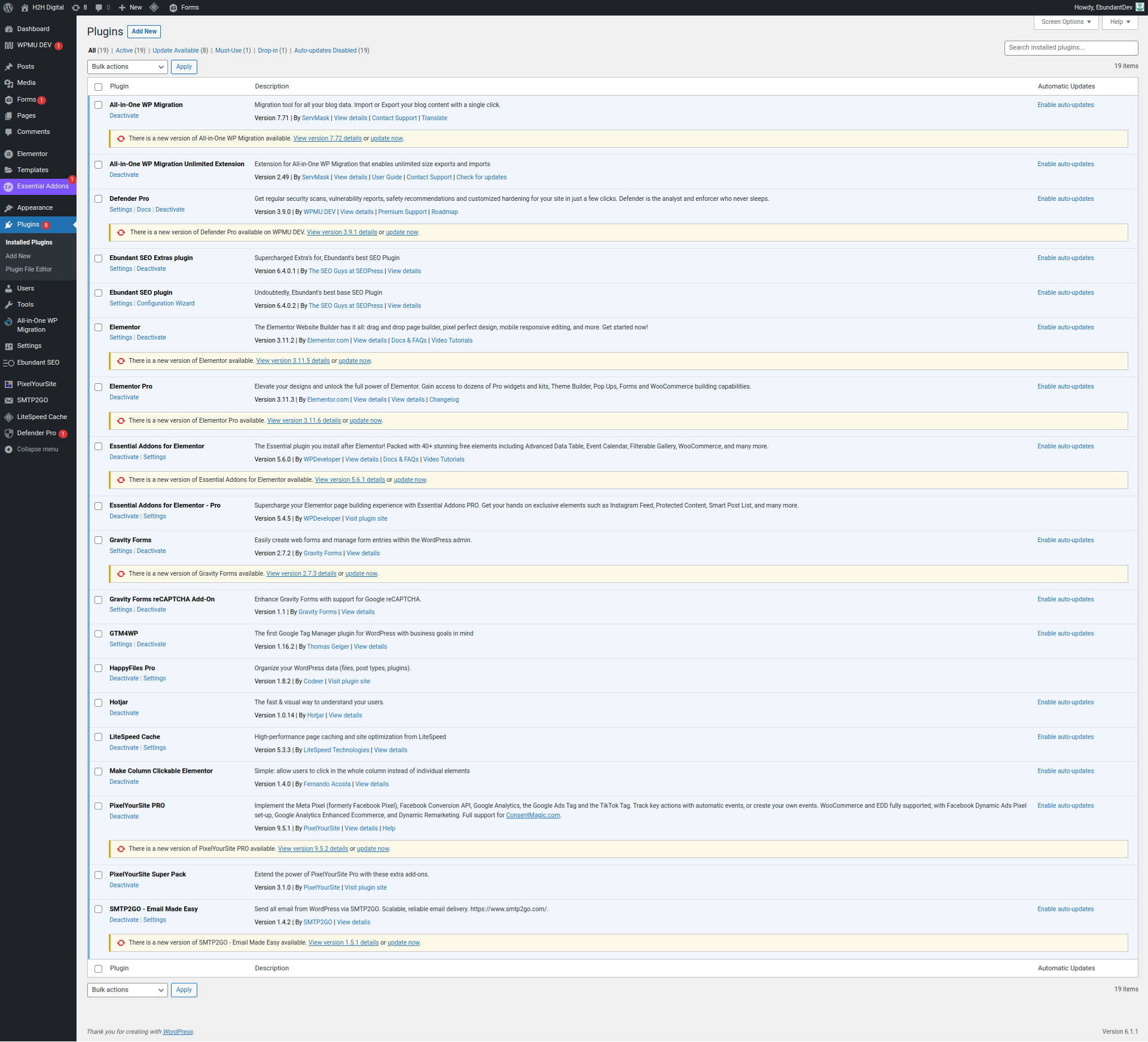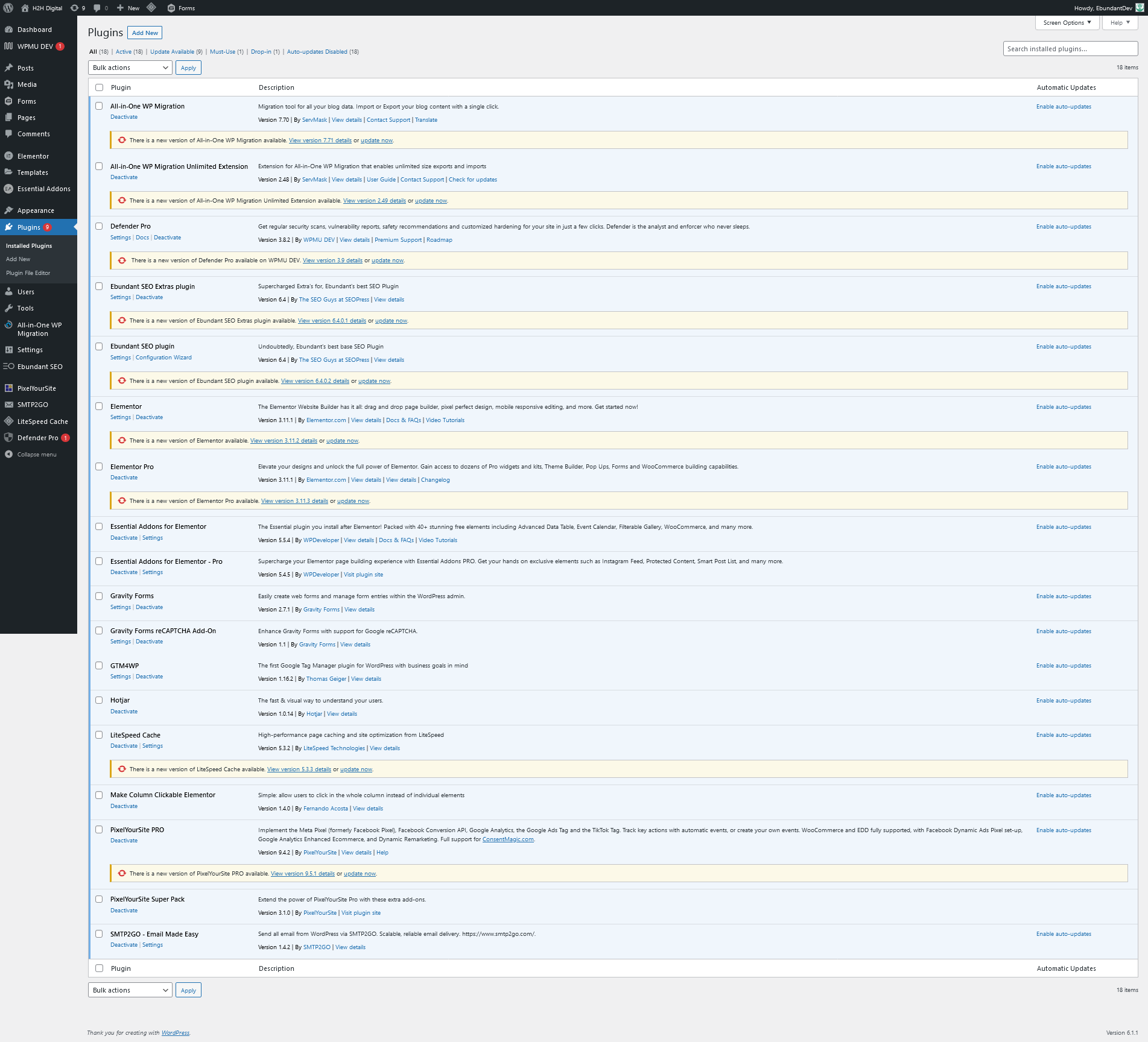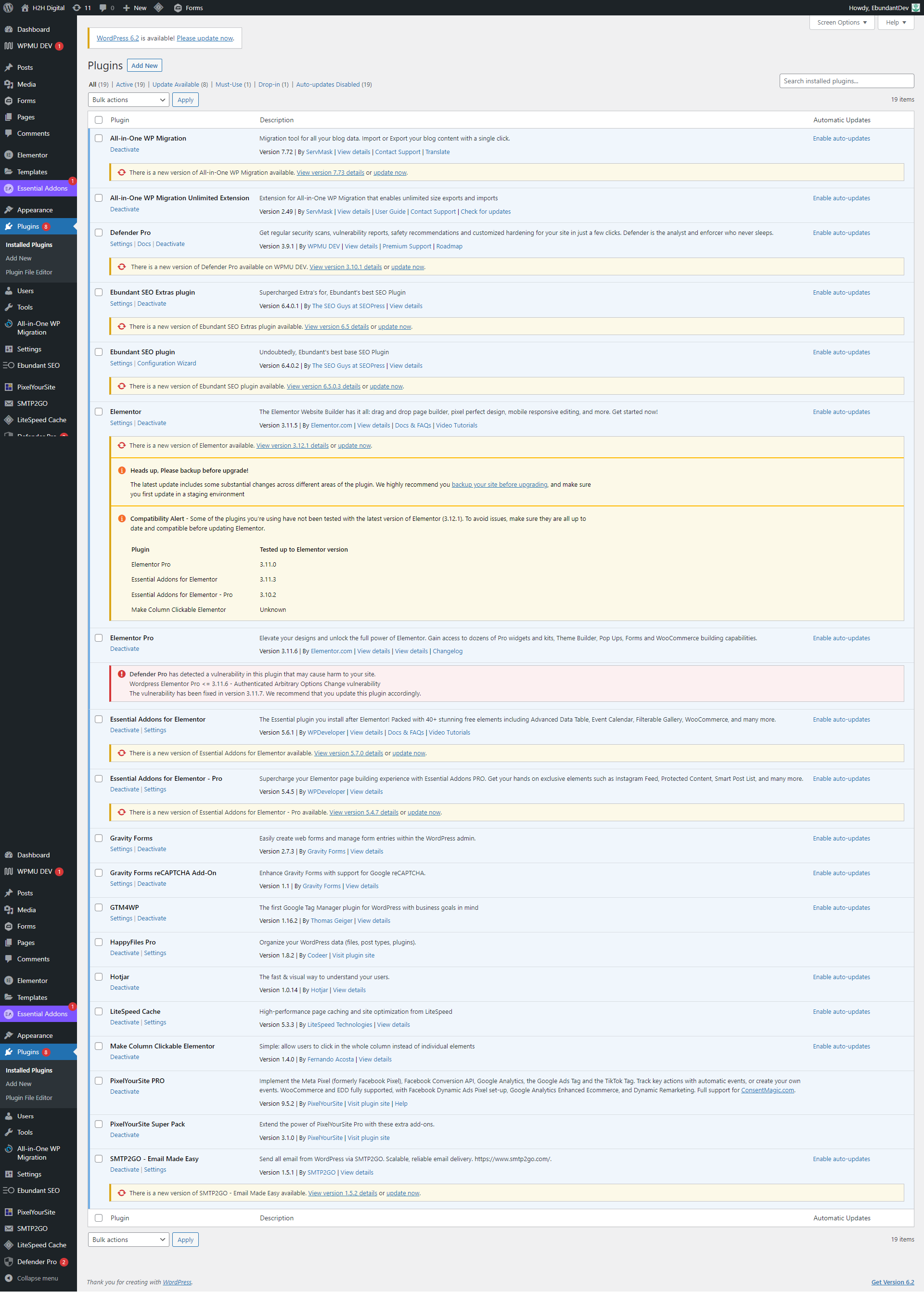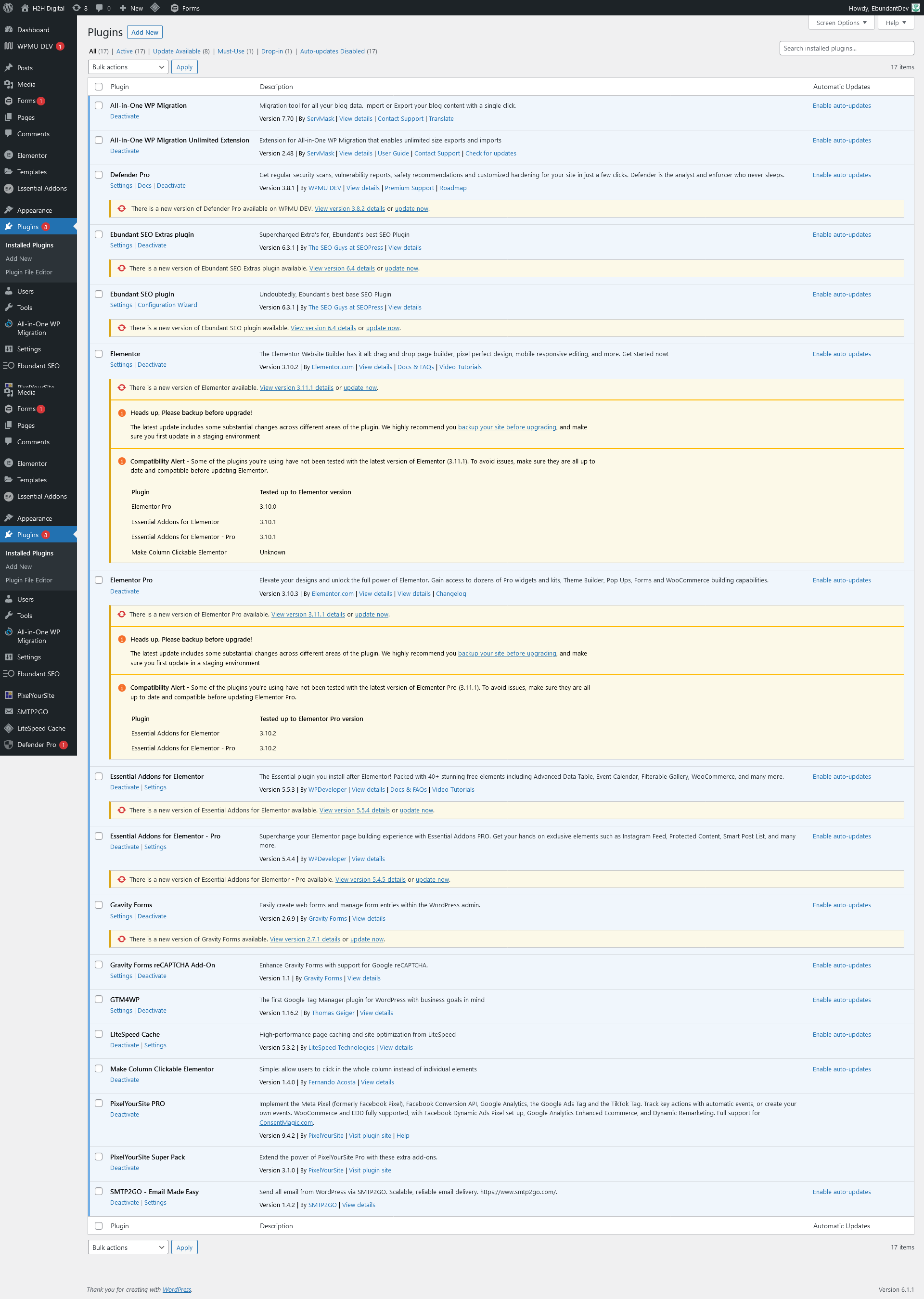 Screenshots Before Plugin Updated